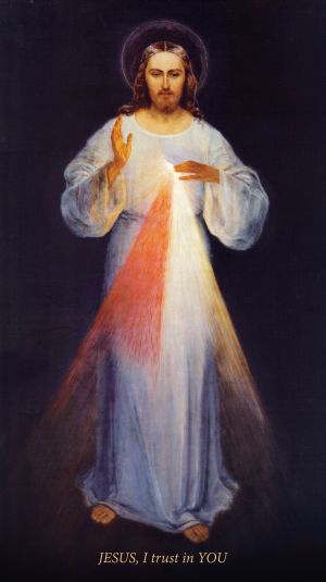 Image: Divine Mercy Image. From Wikipedia: “Original painting of the Divine Mercy (by Eugeniusz Kazimirowski in 1934). This is the only painting which was done under the indications of Sister Faustina when she was still alive, unlike the painting by Adolf Hyła which was done in 1943 after Saint Faustina’s death in 1938 but still the most known.” AUTHOR: By HistoryisResearch, April 4, 2016. This file is licensed under the Creative Commons Attribution-Share Alike 4.0 International license.