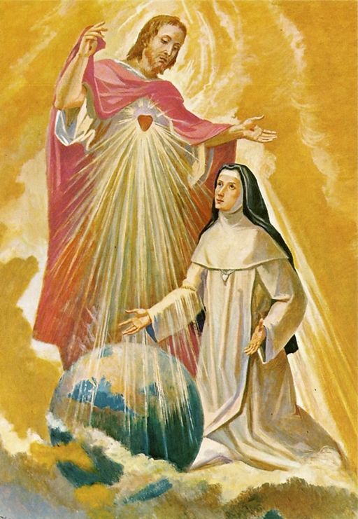 (Painting representing the vision received by Blessed Mary of the Divine Heart. Jesus had revealed to her: “By the brightness of this light, peoples and nations will be illumined, and they will be warmed by its ardor.”)