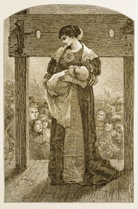 Image: Hester Prynne & Pearl before the stocks, an 1878 illustration for the book by Mary Hallock Foote (Public Domain, U.S.A.)